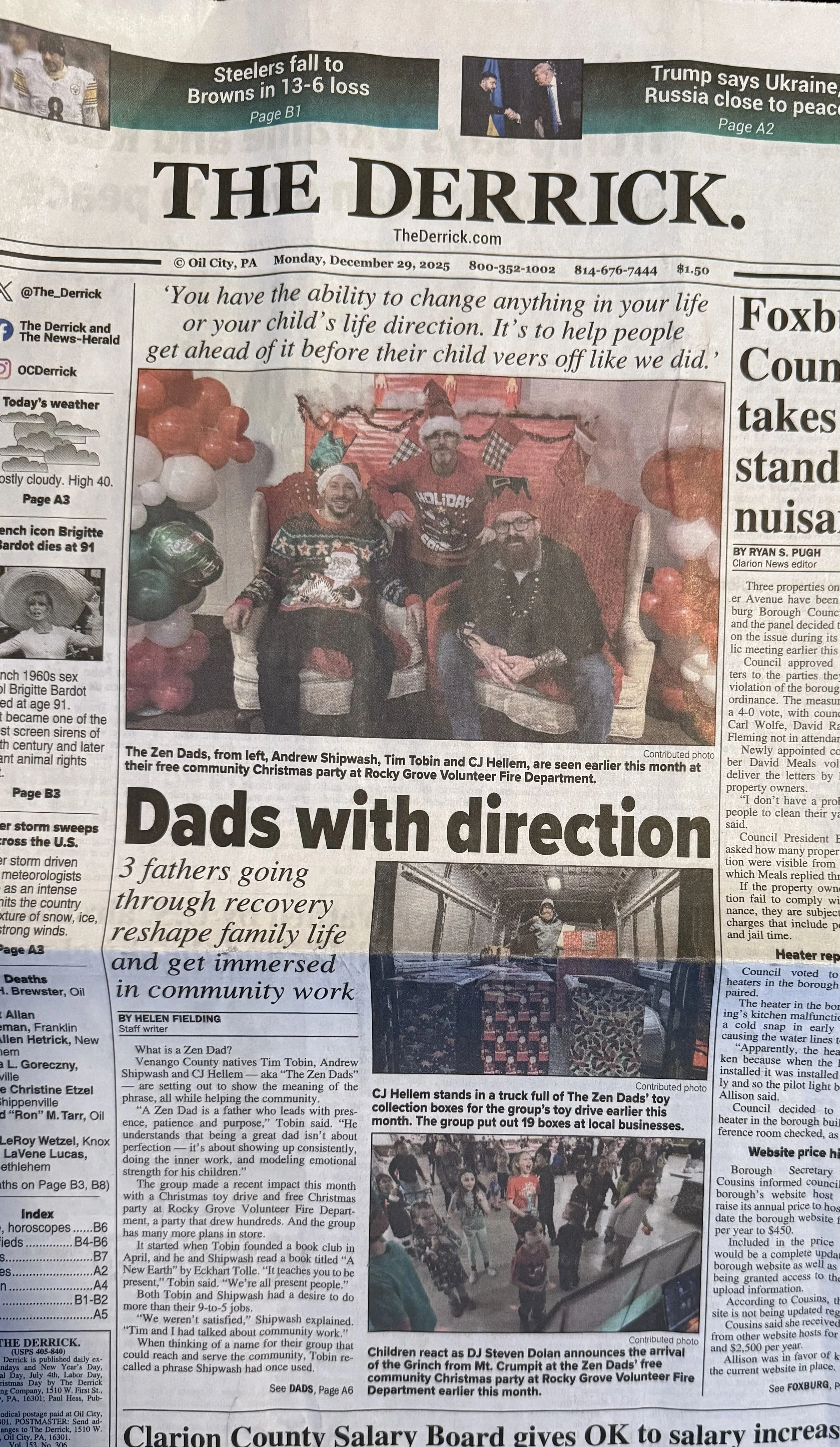 The Zen Dads featured in The Derrick for our inaugural Christmas Party & Toy Drive supporting local families in Venango County